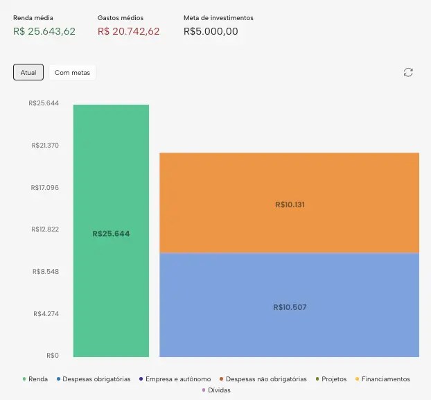 Nossa plataforma te auxilia a fazer um controle especifico de gastos, e através disso seu consultor estipula metas e faz análise e recomendações práticas para otimizar seus gastos e aumentar suas reservas.